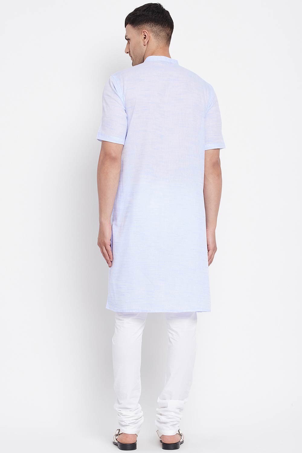 Men's Pure Cotton Solid Long Kurta Top In Blue