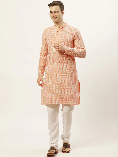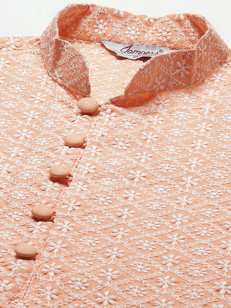 Men's Poly Cotton Solid Short Kurta Top In Peach