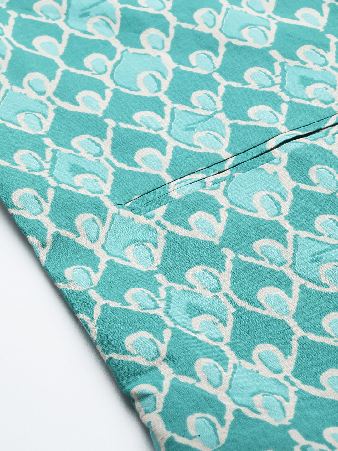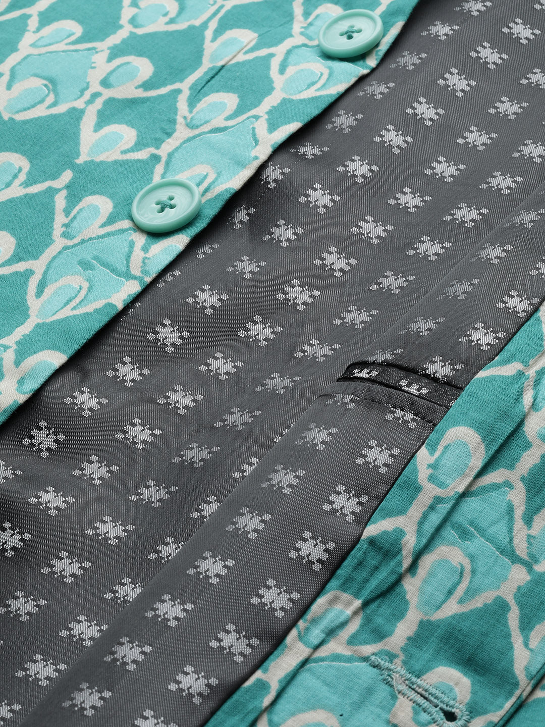 Men Green & Beige Printed Pure Cotton Neharu jacket