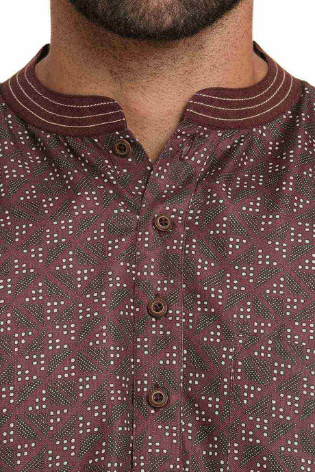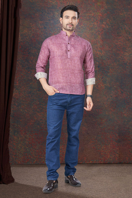 Men's Cotton Printed Short Kurta Top in Magenta - 44