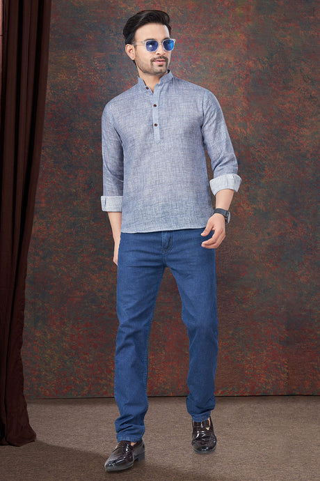 Men's Blended Cotton Short Kurta Top In Ash Grey