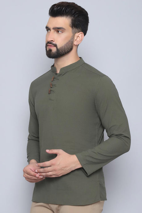 Men's Green Cotton Solid Short Kurta