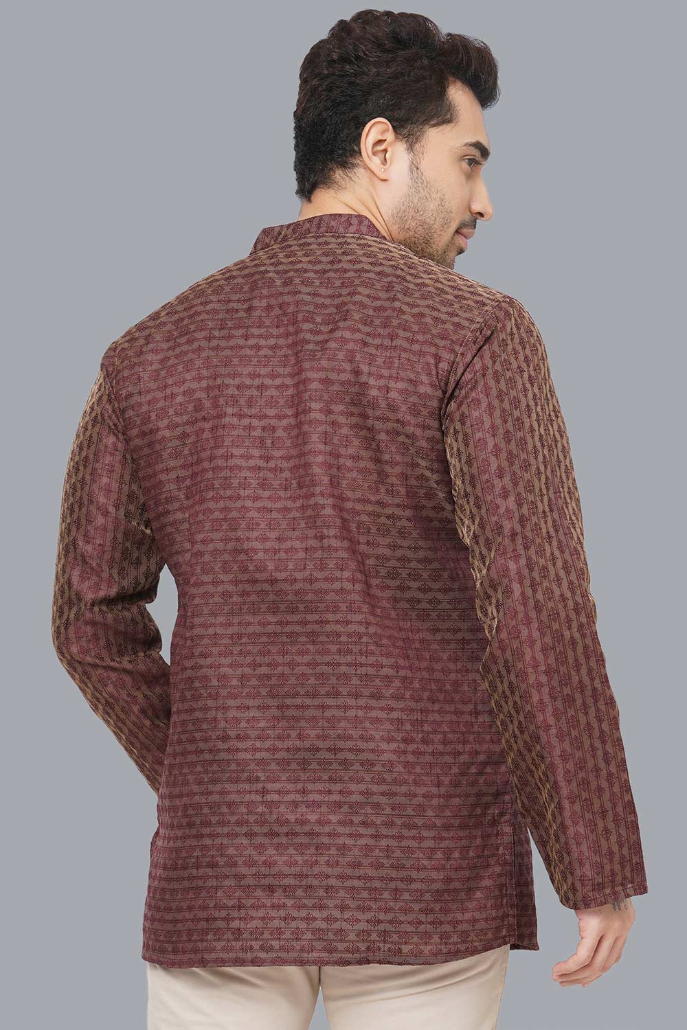 Men's Brown Banarasi Jacquard Short Kurta