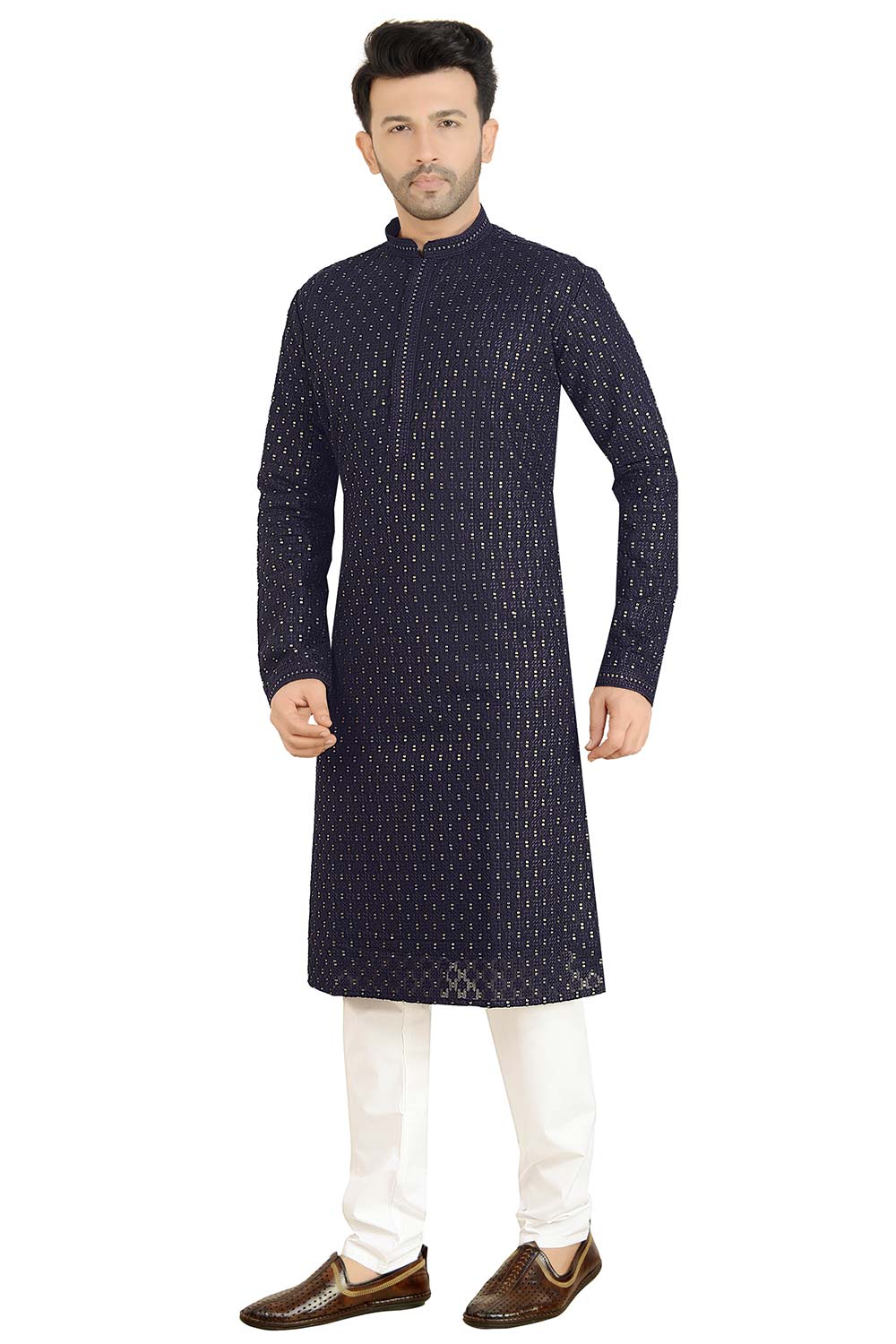 Blue Georgette Kurta Pajama is an elegant and refined outfit that combines the sophistication of georgette fabric with the traditional charm of a kurta and pajama set.