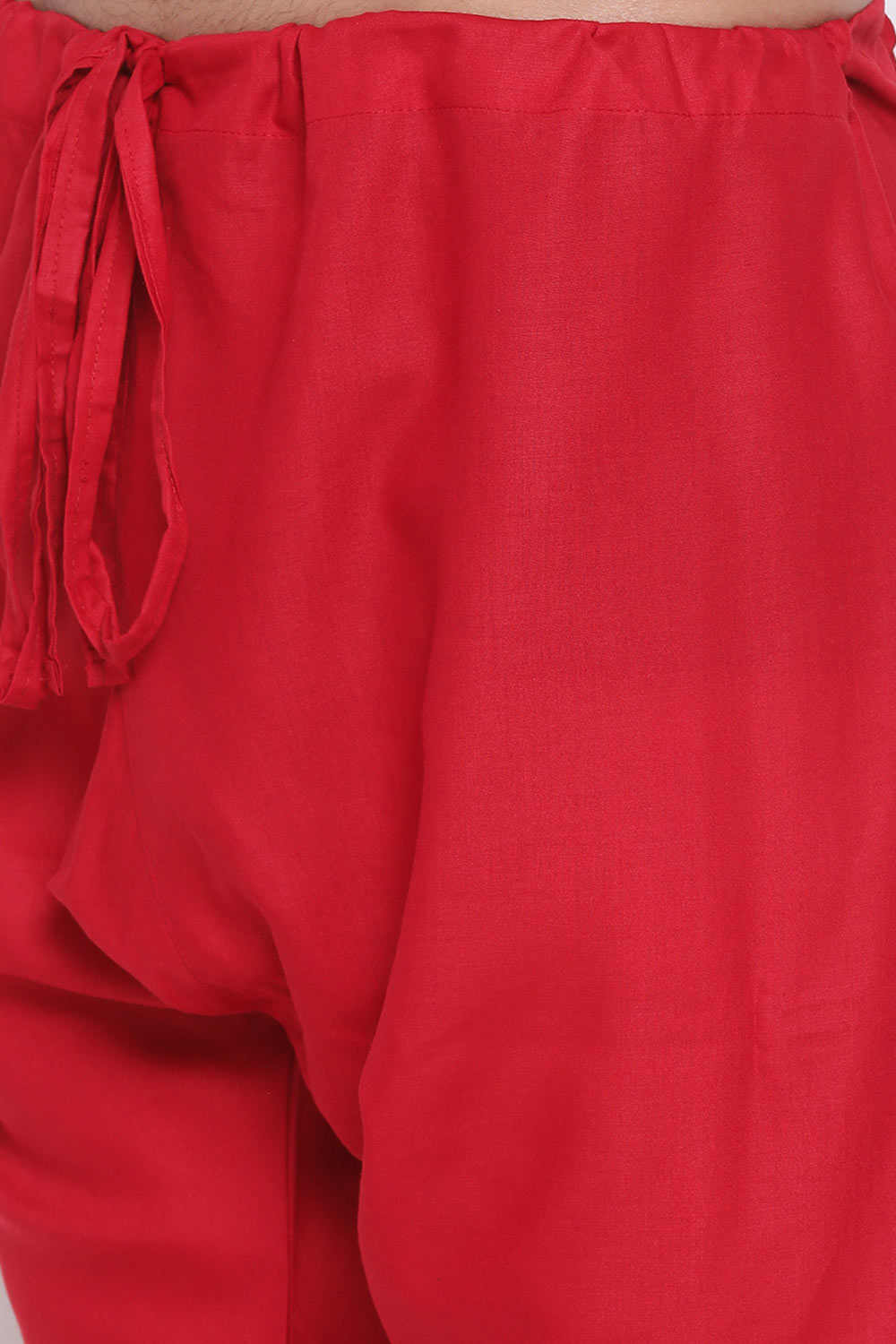 Men's Blended Cotton Solid Kurta And Patiala Set In Maroon