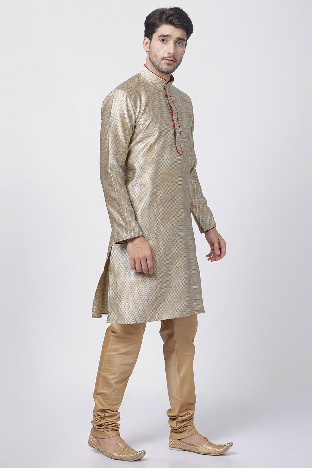 Men's Cotton Art Silk Kurta Set In Beige