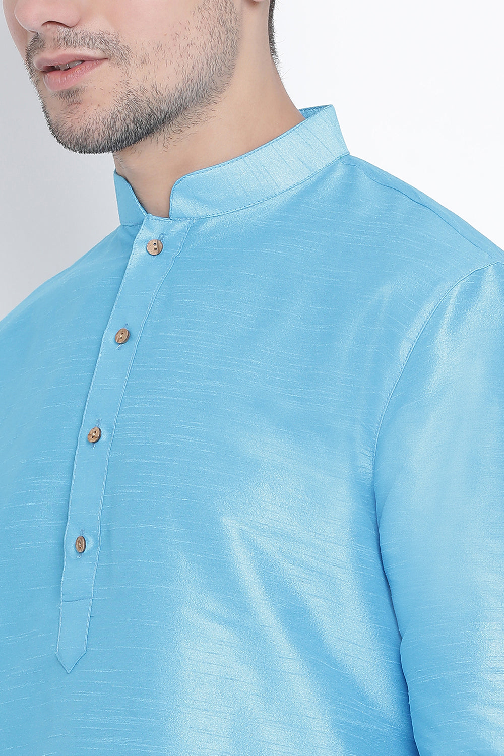 Men's Cotton Art Silk Kurta Set In Light Blue