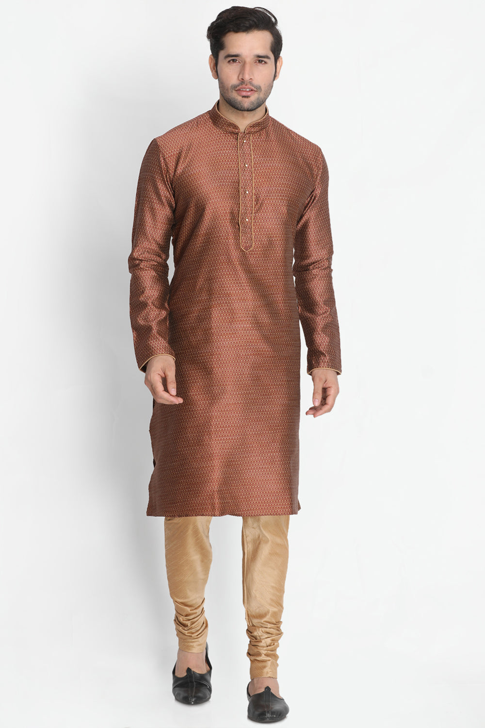 Men's Cotton Art Silk Kurta Set In Maroon
