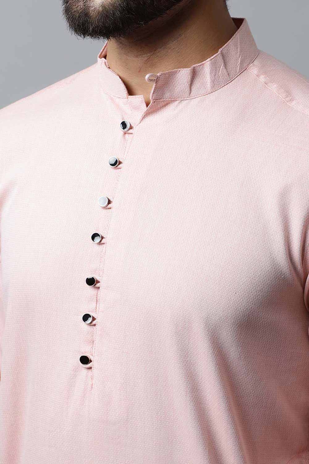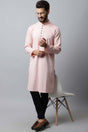 Men's Light Pink Solid Full Sleeve Long Kurta Top