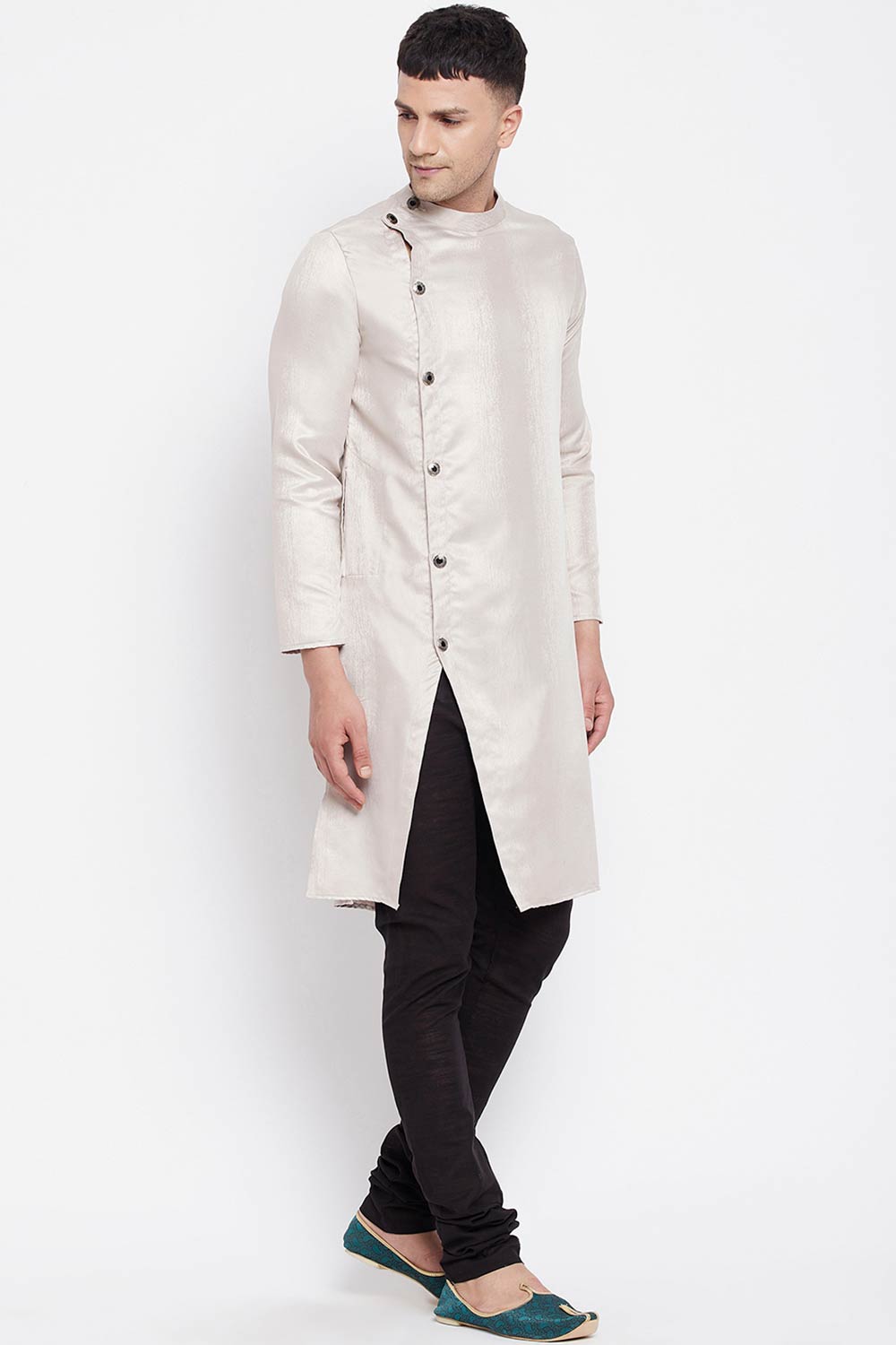 Men's Rayon Solid Sherwani Top Kurta Top In Beige