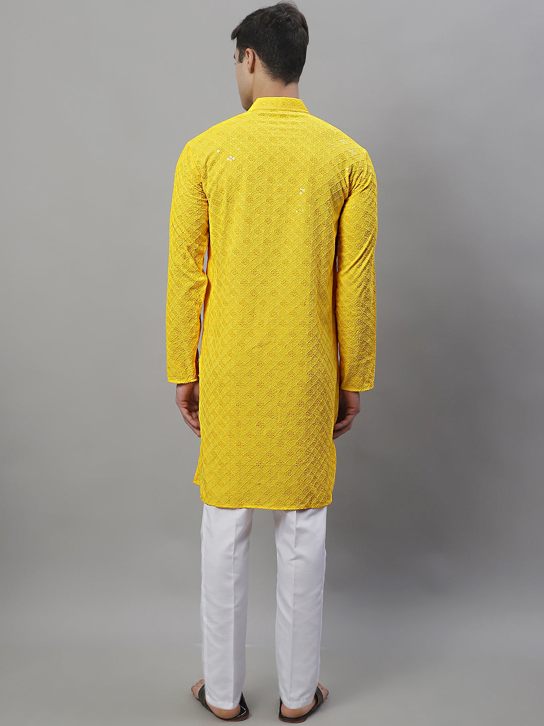 Men's Yellow Chikankari Embroidered And Sequin Kurta With Pajama