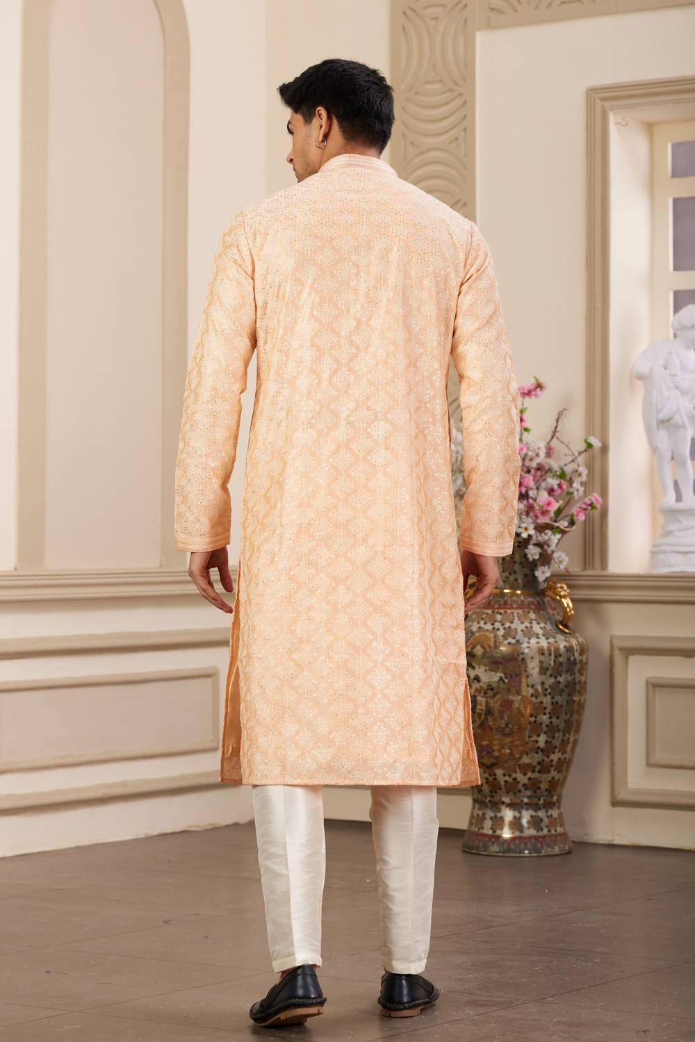 Experience timeless style with our Men's Kurta Sets a perfect balance of tradition and modern sophistication. Made from Art Silk this kurta set offers unmatched comfort and a refined look. Featuring Embroidered it reflects a rich heritage with a modern touch. Designed for Festive this outfit is perfect for special occasion or your celebrations. Complete the look with mojari shoes and a classic watch for a dapper appearance. Make every occasion special with the elegance of Men's Kurta Sets