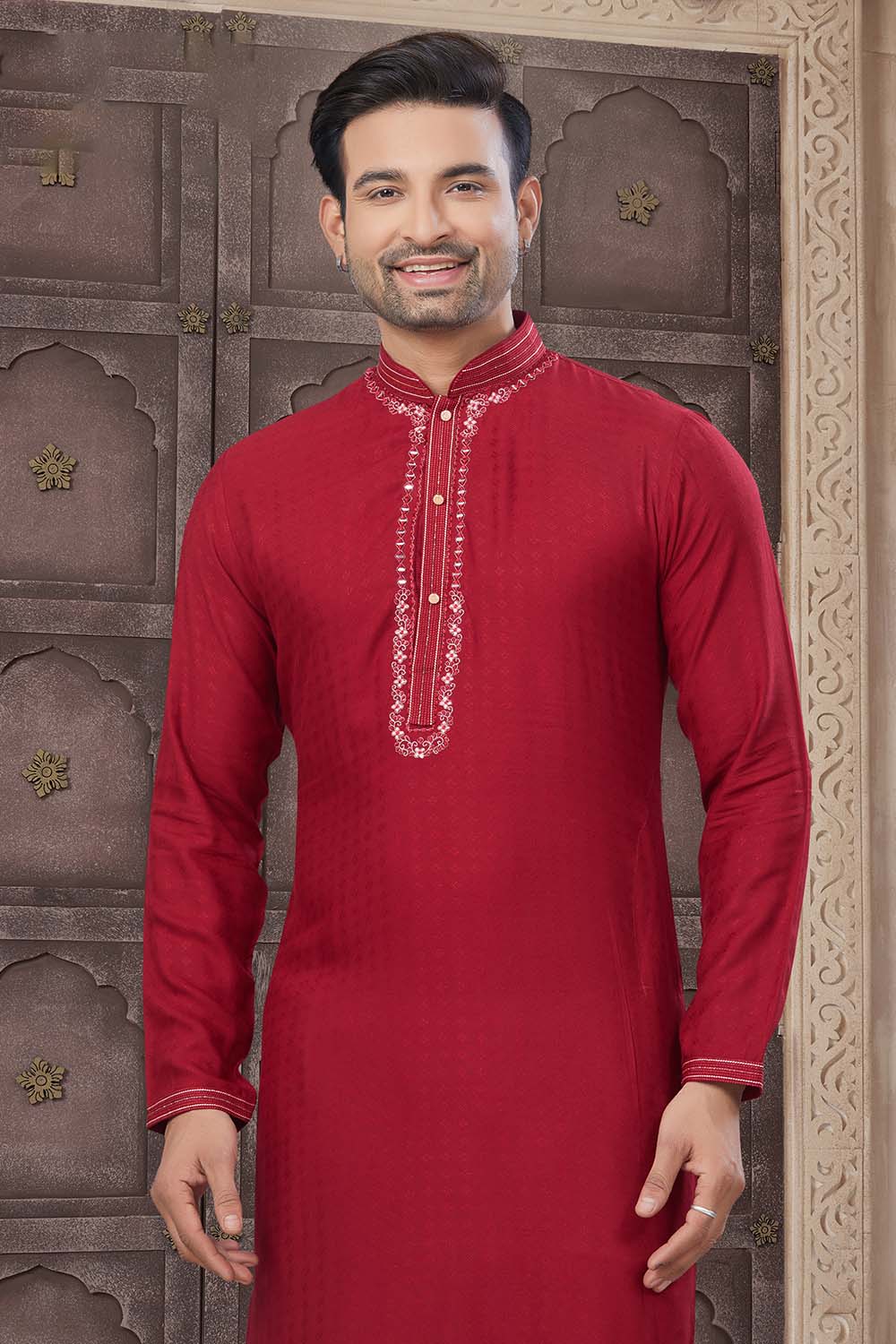 Experience timeless style with our Men's Kurta Set a perfect balance of tradition and modern sophistication. Made from Cotton this kurta set offers unmatched comfort and a refined look. Featuring Embroidery and Solid pattern it reflects a rich heritage with a modern touch. Designed for Festivewear this outfit is perfect for special occasion or your celebrations. Complete the look with mojari shoes and a classic watch for a dapper appearance. Make every occasion special with the elegance of Men's Kurta Set