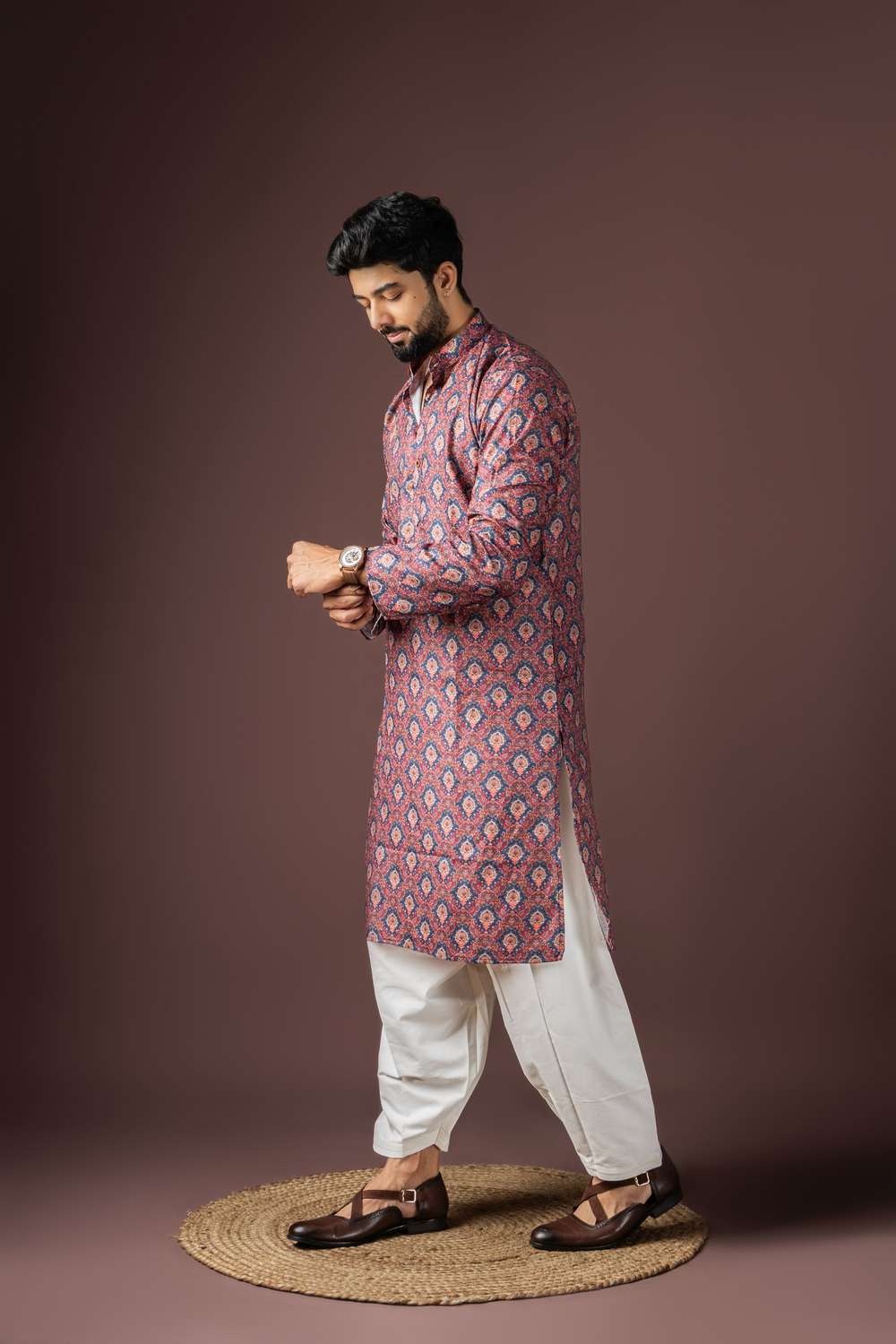 Experience timeless style with our Men's Kurta Sets a perfect balance of tradition and modern sophistication. Made from Cotton Blended this kurta set offers unmatched comfort and a refined look. Featuring Printed it reflects a rich heritage with a modern touch. Designed for Festive this outfit is perfect for special occasions or your celebrations. Complete the look with mojari shoes and a classic watch for a dapper appearance. Make every occasion special with the elegance of Men's Kurta Sets
