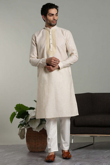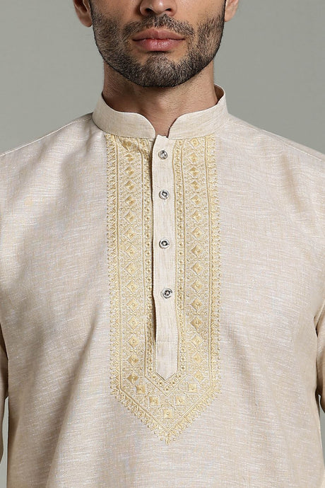 Men's Cream Sequin with Embroidered Art Silk Sherwani Sets