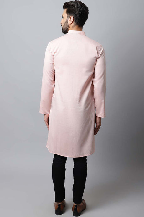 Men's Light Pink Solid Full Sleeve Long Kurta Top