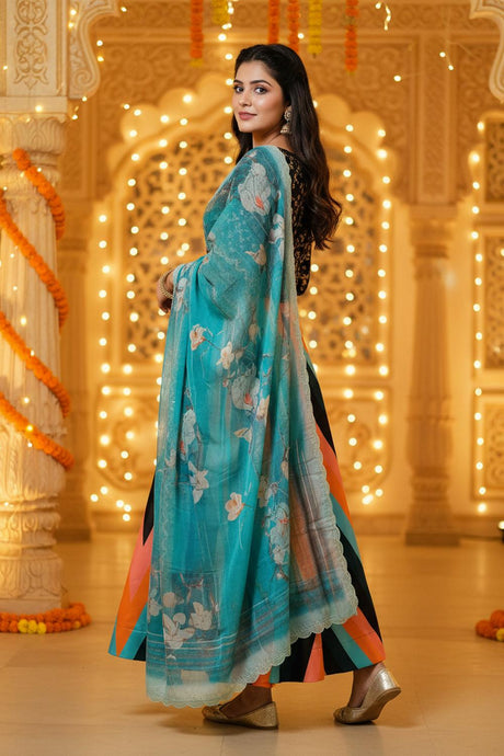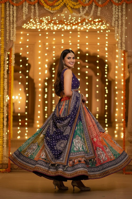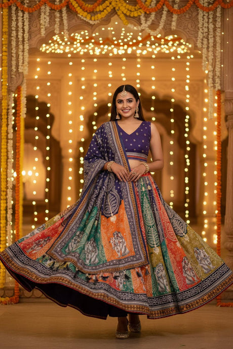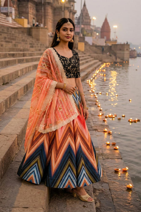 Multi Color Floral Printed Silk Lehenga (ZCL-7506-1)
