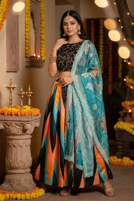 Multi Color Printed Satin Lehenga (ACA5768)