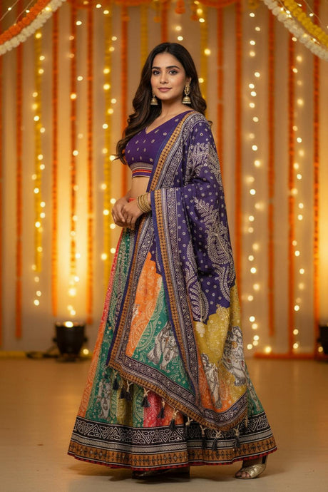 Multi Color Printed Cotton Blend Lehenga (ACA5787)