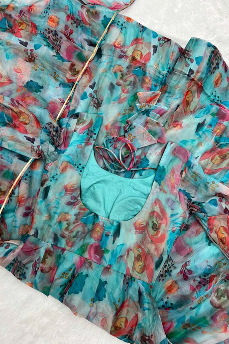 Multi-Color Organza Floral Print Full Sleeves Anarkali Suit Set