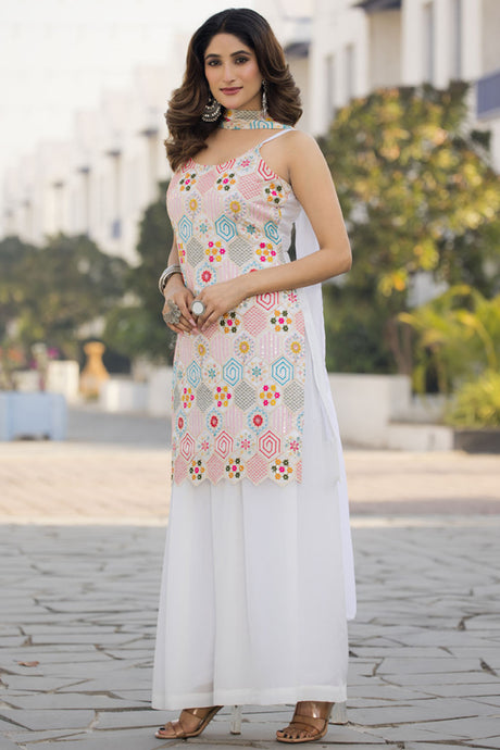 Multi Color Sequin with Embroidered Georgette Sharara Suit Set