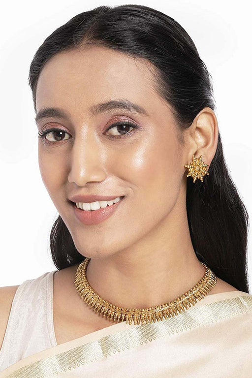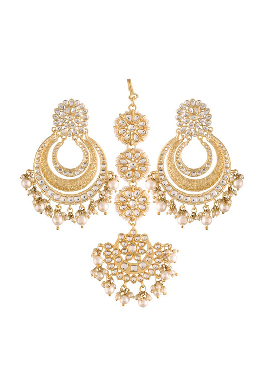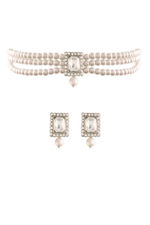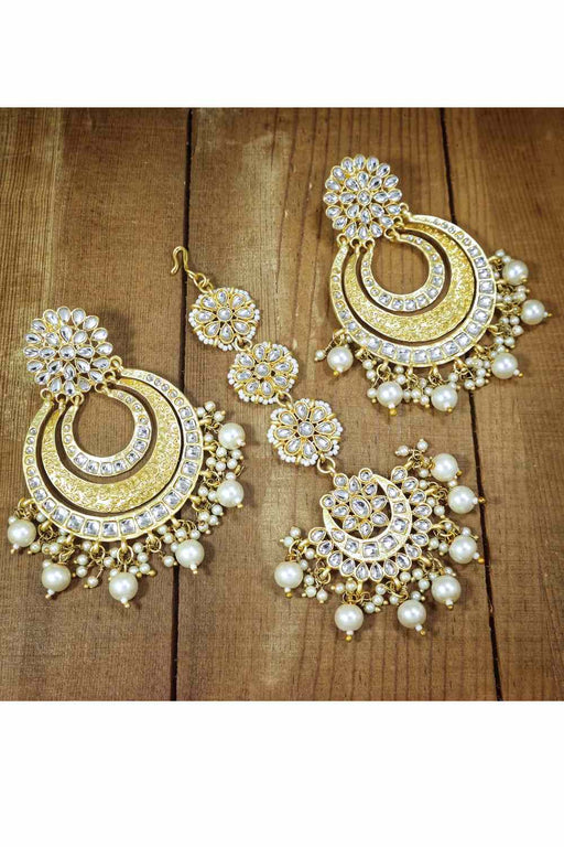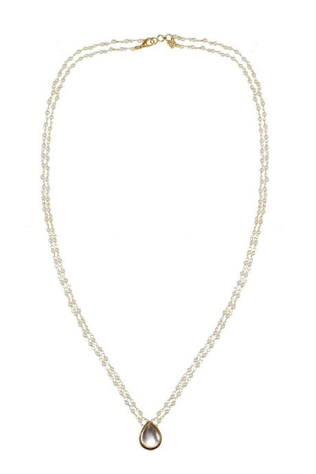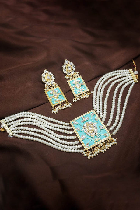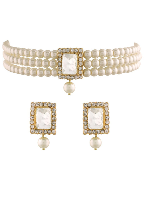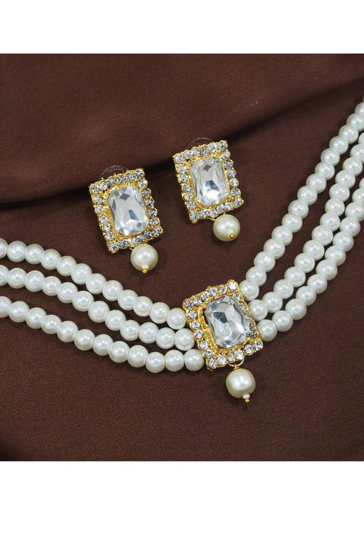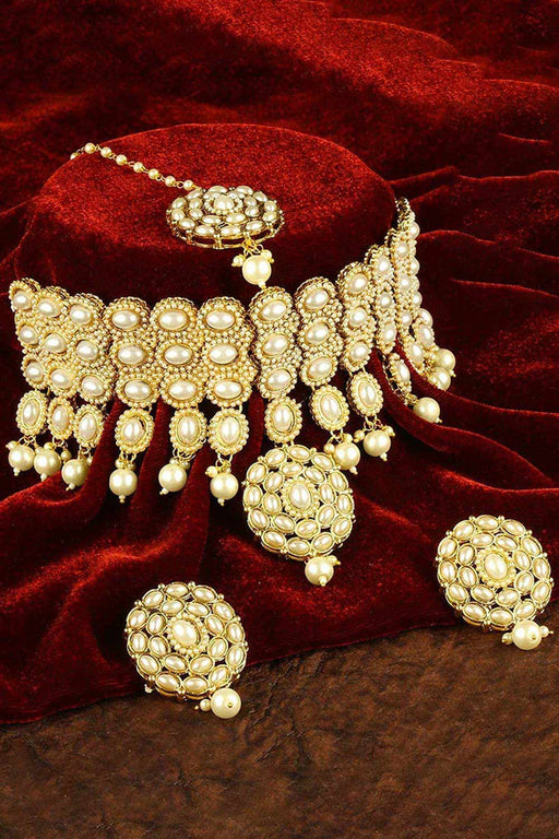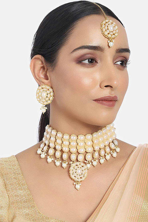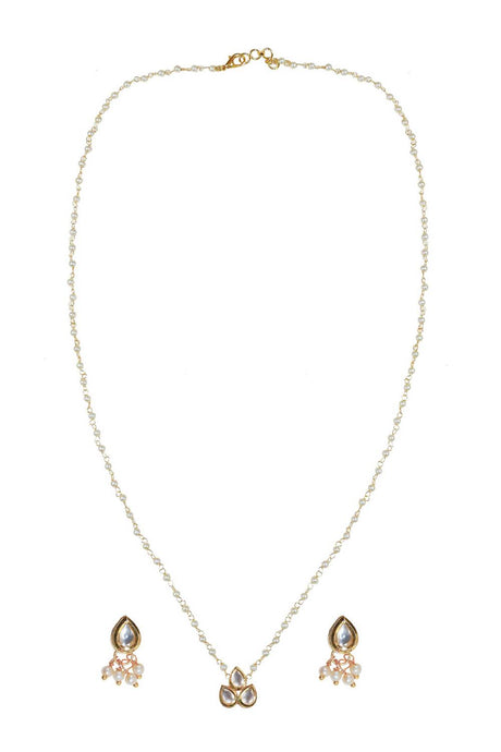 Golden Tear Drop Kundan Alloy Necklace With Pearls