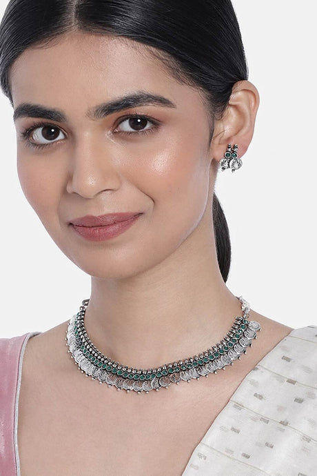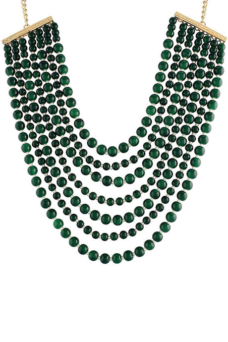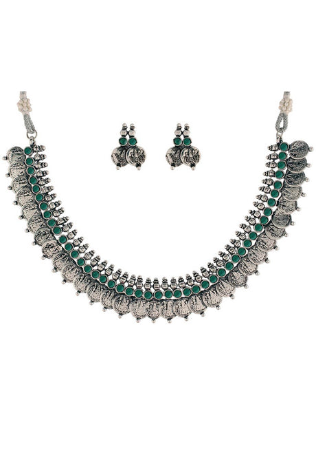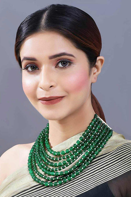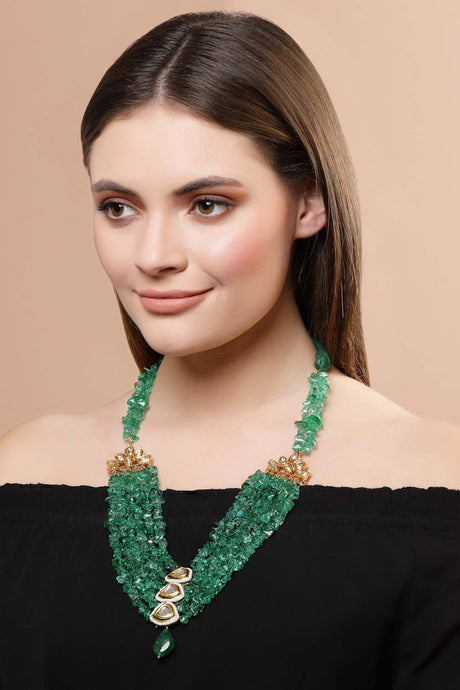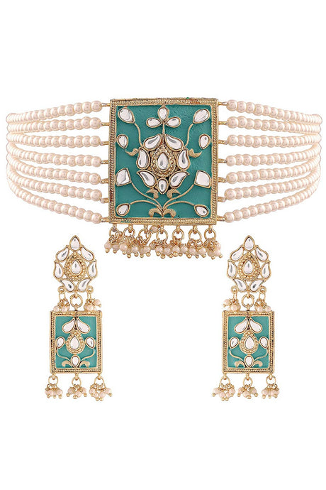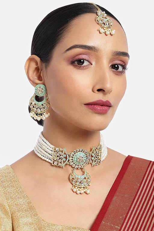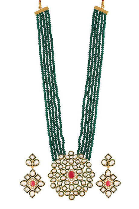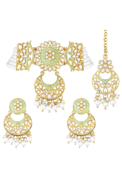 Green And White Gold-Plated Kundan And Pearls Necklace