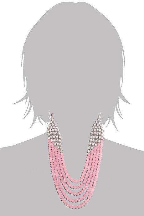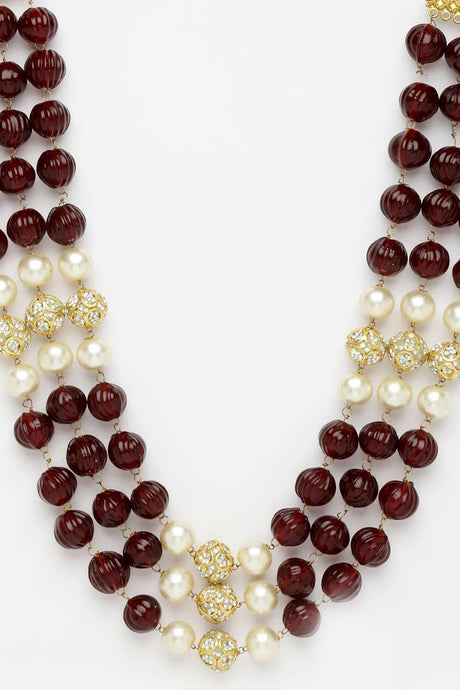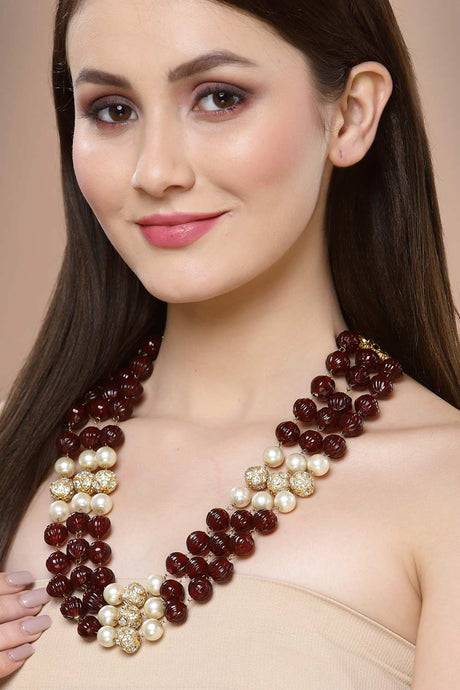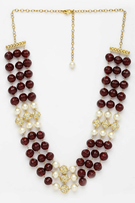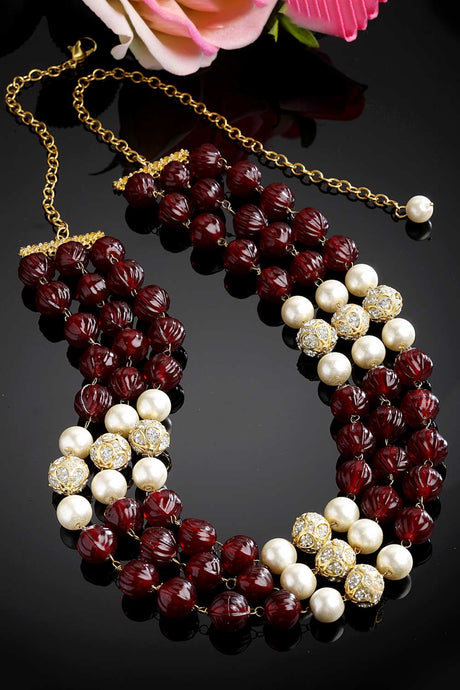 Maroon And Gold Gold-Plated American Diamonds And Pearls Bead Necklaces
