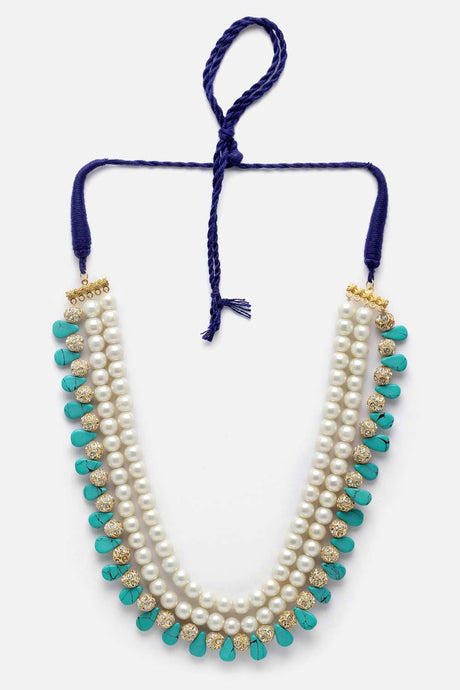 Blue And Purple Pearls And Natural Stones Layered Necklace