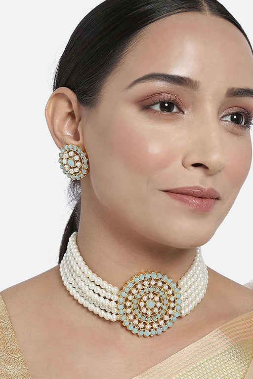 Multicolor Gold-Plated Kundan And Pearls Necklace