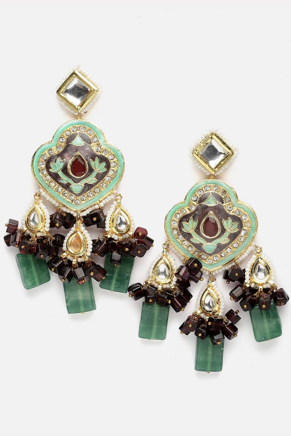 - Work/Design: Kundan, American Diamonds, Pearls, Natural Stones ; Plating is Gold-Plated; Base Metal is Alloy