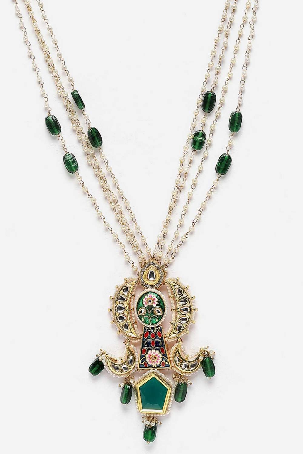 • Work/Design: Kundan, Pearls, Natural Stones; Plating is Gold-Plated; Base Metal is Alloy