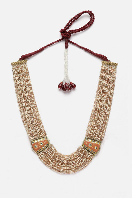 Golden Ruby Tear Drop Kundan Pearl Alloy Necklace