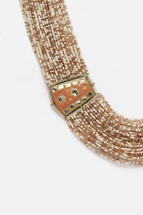 White Gold Tone Kundan Alloy Necklace With Earrings