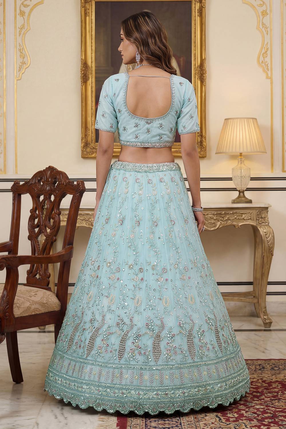 Step into the spotlight with our Lehenga a dazzling creation designed to make your special moments unforgettable. Crafted from premium Net this lehenga offers a perfect combination of elegance and ease, keeping you graceful all day long. The exquisite Sequin with Embroidered paired with the intricate [Pattern] makes this lehenga a masterpiece of traditional craftsmanship. Whether it’s Wedding, Reception, Engagement, Sangeet, Mehendi, Party or a grand celebration, this lehenga is the perfect choice to make a statement. Pair it with an ornate choker, a matching dupatta, and embellished stilettos to complete the regal look. Add a sleek bun or cascading curls for added glamour. Make every moment magical with the timeless allure of Lehenga