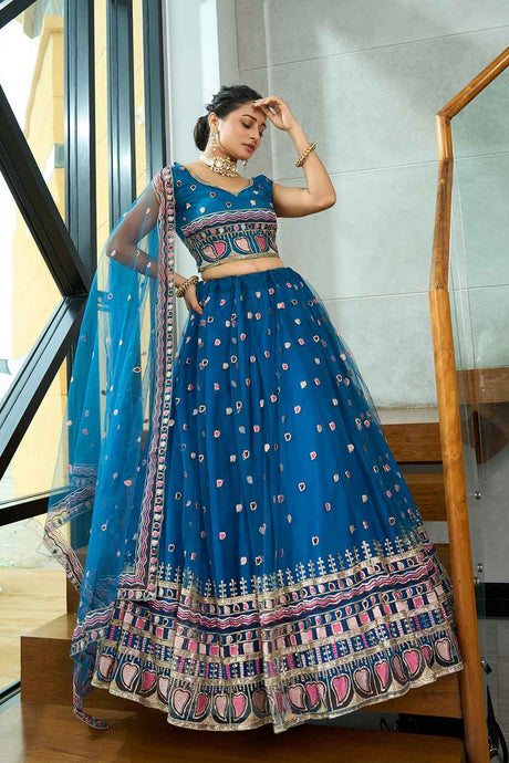 Blue Soft Net Embroidered Lehenga Choli
