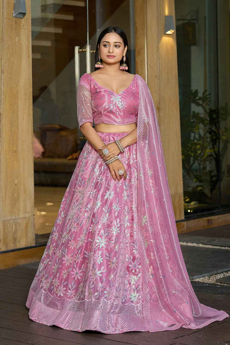 Pink Soft Net Embroidered Lehenga Choli