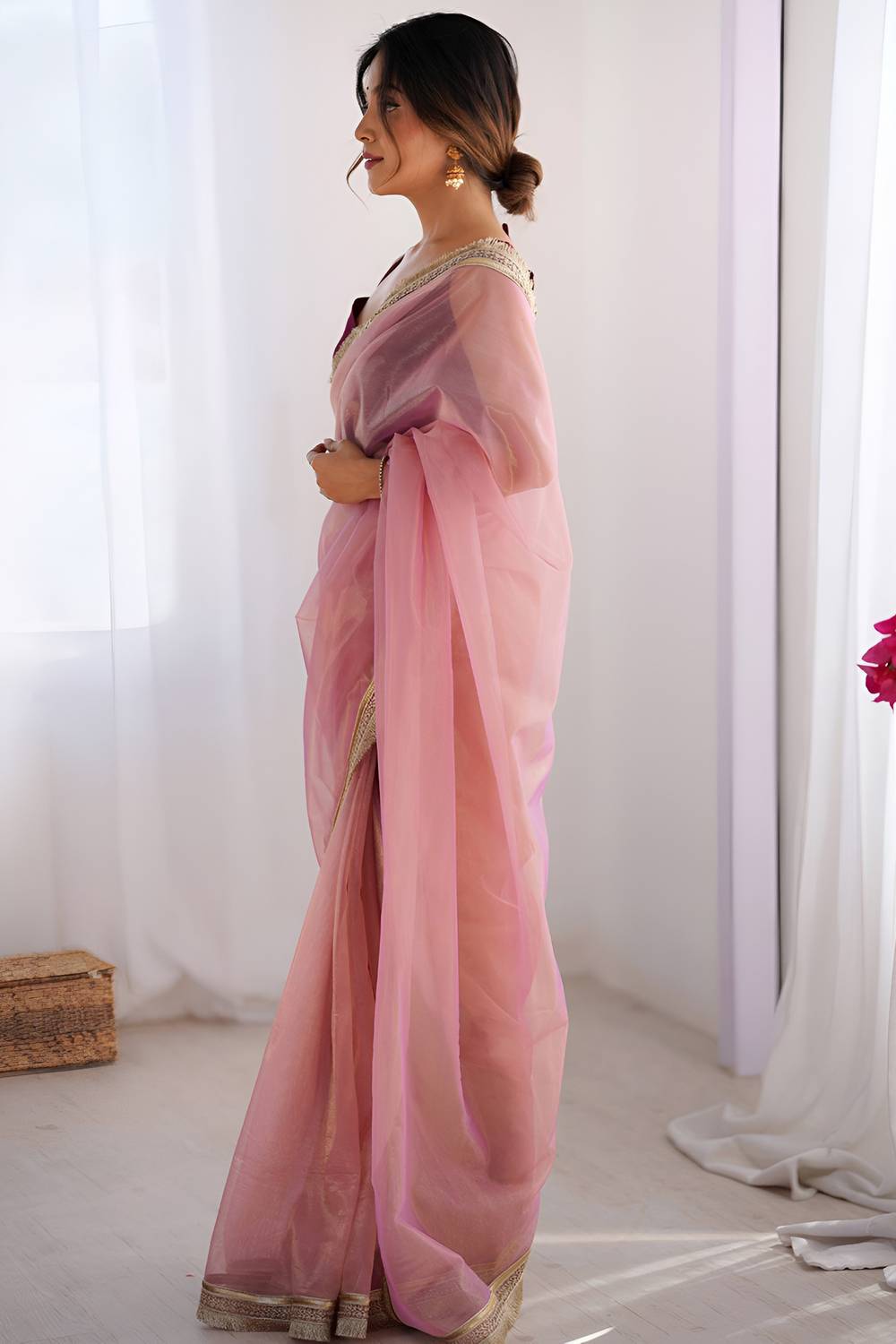 Elevate your wardrobe with our exquisite Saree a masterpiece crafted to add timeless elegance to your style. Made from Net this saree offers a perfect mix of comfort and sophistication. Adorned with Solid with Lace Border it showcases intricate craftsmanship that speaks volumes of tradition and artistry. Perfect for Festive this saree is a versatile addition to your collection, ensuring you stand out effortlessly. Pair it with elegant Jewelry, for a glamorous look. Add Clutches or Potli Bags and complete the ensemble with Wedges & Heels , making it a perfect choice for any event. Make a statement and embrace the elegance of Saree today