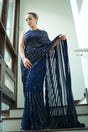 Elevate your wardrobe with our exquisite Saree a masterpiece crafted to add timeless elegance to your style. Made from Georgette this saree offers a perfect mix of comfort and sophistication. Adorned with Sequin it showcases intricate craftsmanship that speaks volumes of tradition and artistry. Perfect for Party this saree is a versatile addition to your collection, ensuring you stand out effortlessly. Pair it with elegant Jewelry, for a glamorous look. Add Clutches or Potli Bags and complete the ensemble with Wedges & Heels , making it a perfect choice for any event. Make a statement and embrace the elegance of Saree today