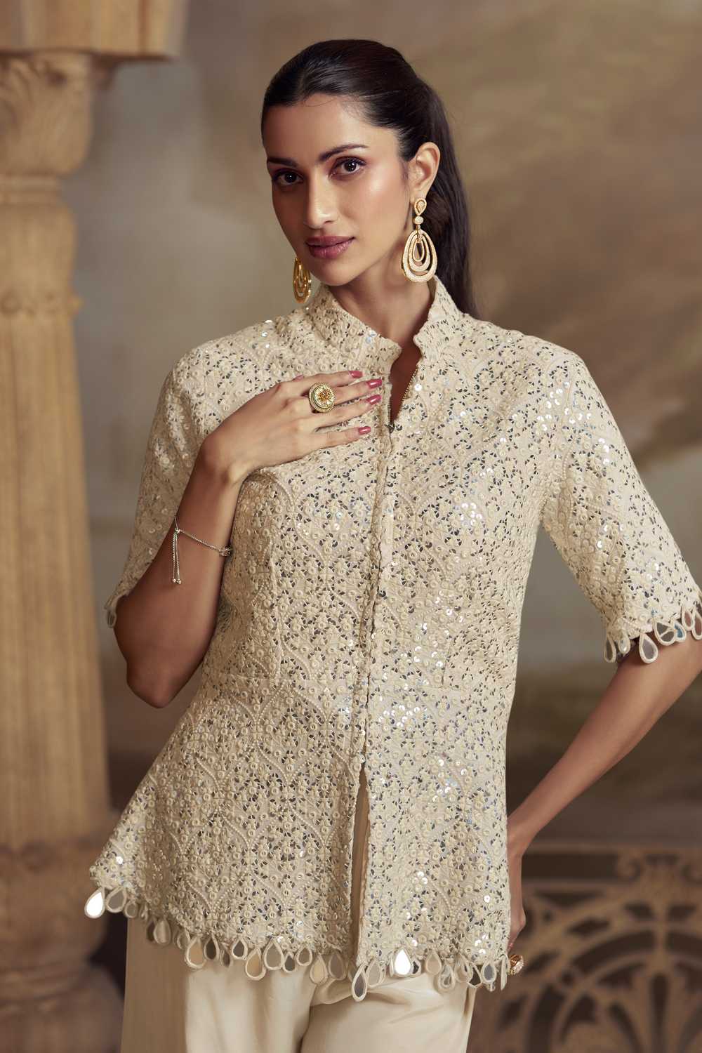 Cream Sequin with Embroidered Georgette Co-Ord Set