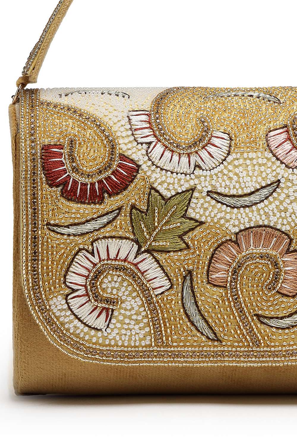 Gold Embellished Premium Faux Suede Clutch