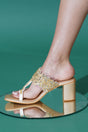 Gold Embellished Pu Leather Heels