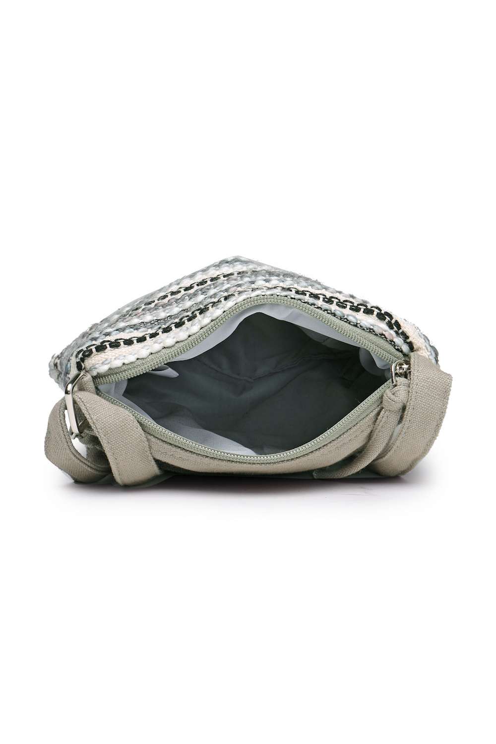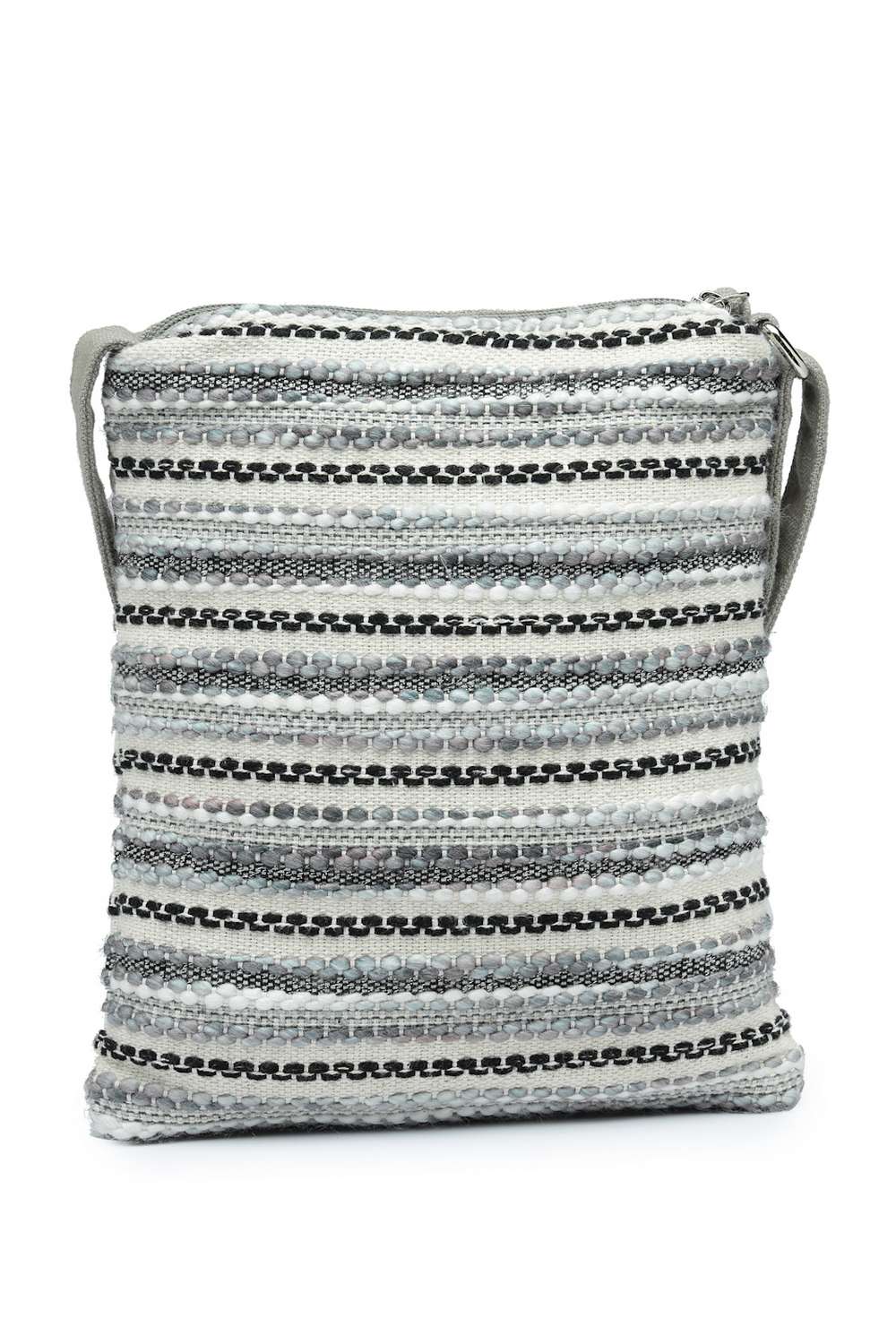 Grey Striped Woven Acrylic Jacquard Sling Bag