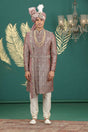 Men's Wine Sequin with Embroidered Banarasi Sherwani Sets
