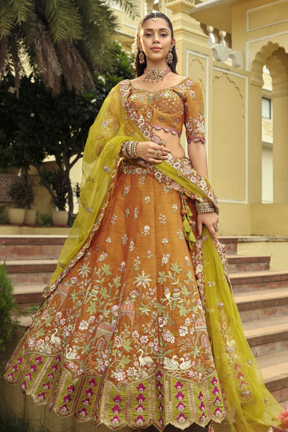 Step into the spotlight with our Lehenga a dazzling creation designed to make your special moments unforgettable. Crafted from premium Silk this lehenga offers a perfect combination of elegance and ease, keeping you graceful all day long. The exquisite Floral Embroidered makes this lehenga a masterpiece of traditional craftsmanship. Whether it’s Wedding, Reception, Sangeet or a grand celebration, this lehenga is the perfect choice to make a statement. Pair it with an ornate choker, a matching dupatta, and embellished stilettos to complete the regal look. Add a sleek bun or cascading curls for added glamour. Make every moment magical with the timeless allure of Lehenga