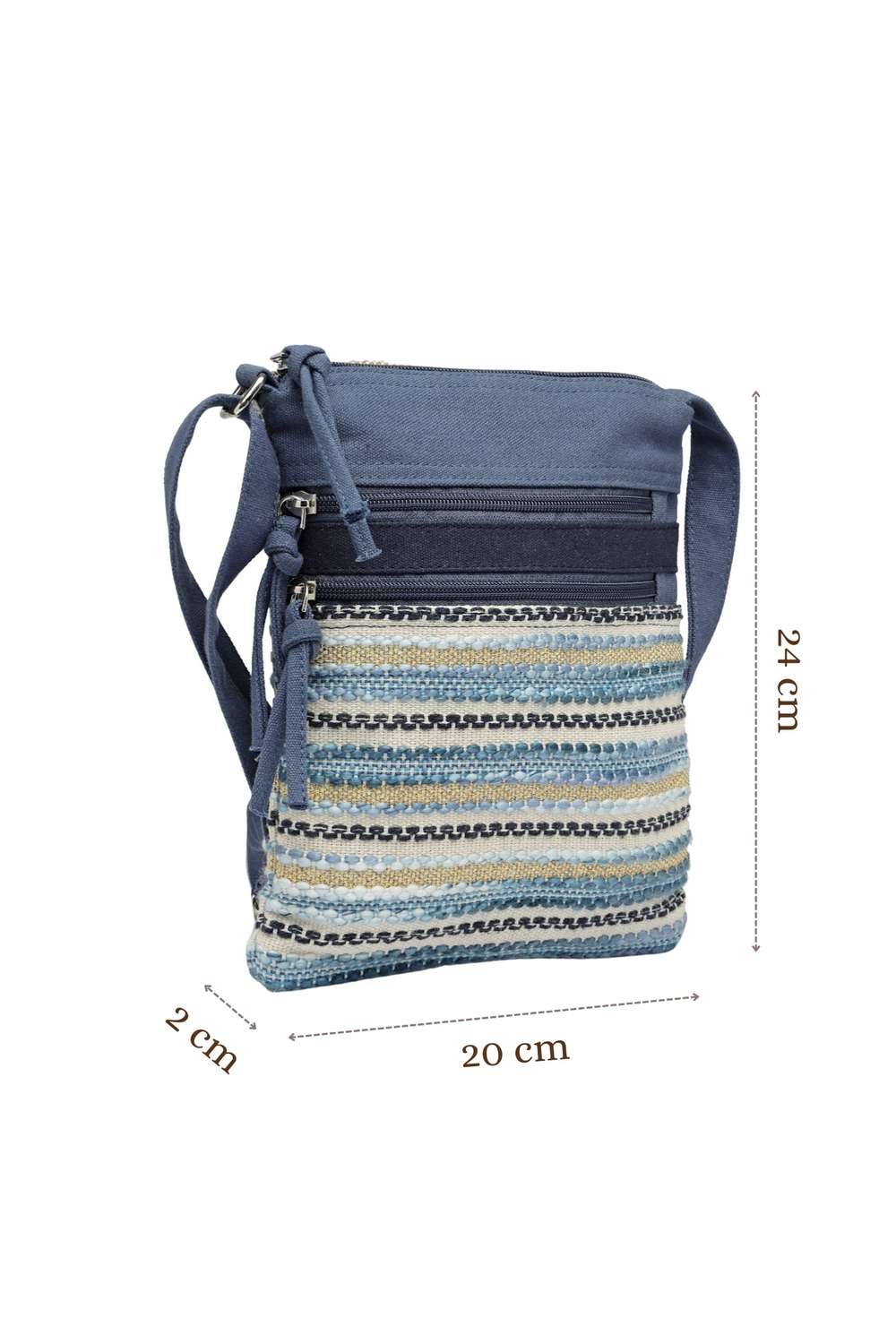 Navy Blue Striped Woven Acrylic Jacquard Sling Bag