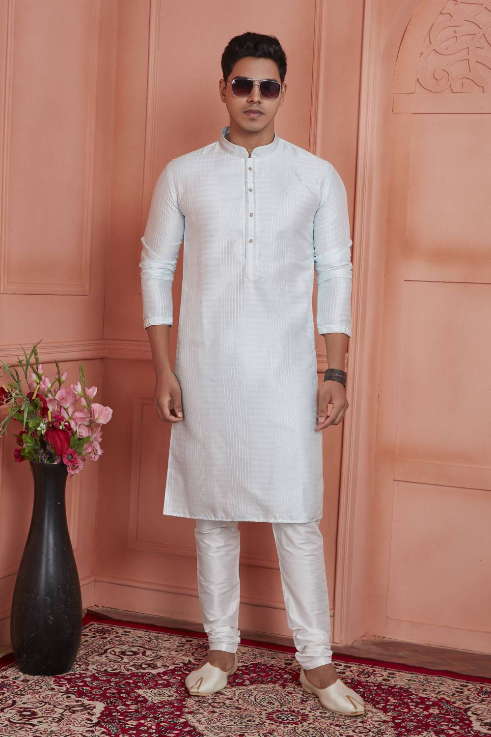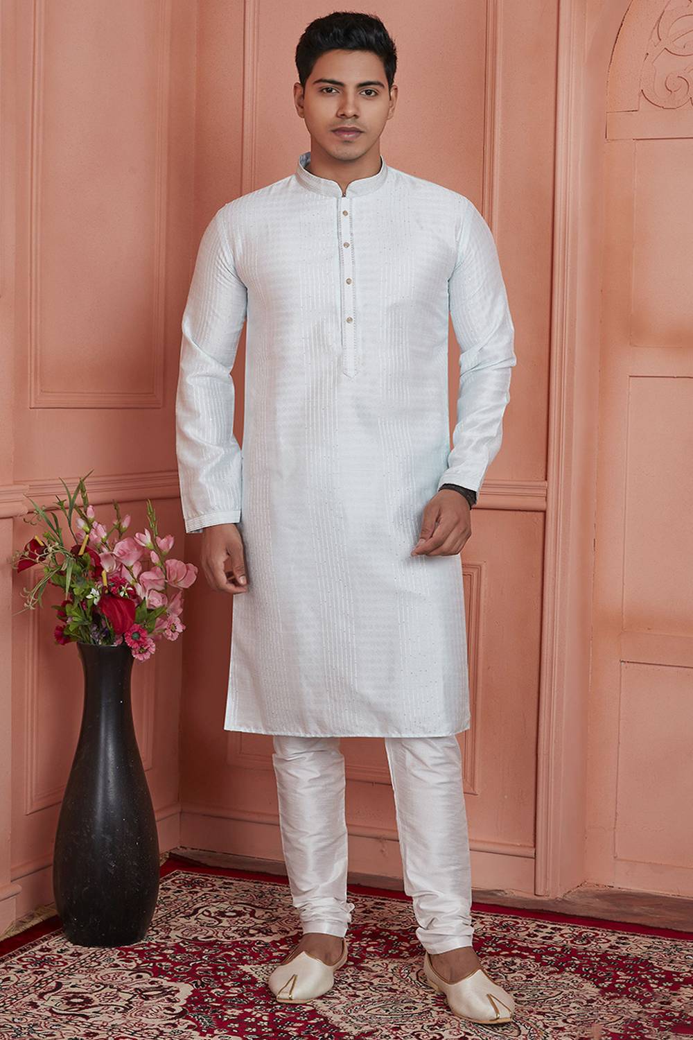 Experience timeless style with our Men's Kurta Sets a perfect balance of tradition and modern sophistication. Made from Jacquard this kurta set offers unmatched comfort and a refined look. Featuring Embroidered it reflects a rich heritage with a modern touch. Designed for Festive this outfit is perfect for special occasions or your celebrations. Complete the look with mojari shoes and a classic watch for a dapper appearance. Make every occasion special with the elegance of Men's Kurta Sets