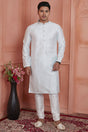 Off White Embroidered Jacquard Kurta Pyjama Set