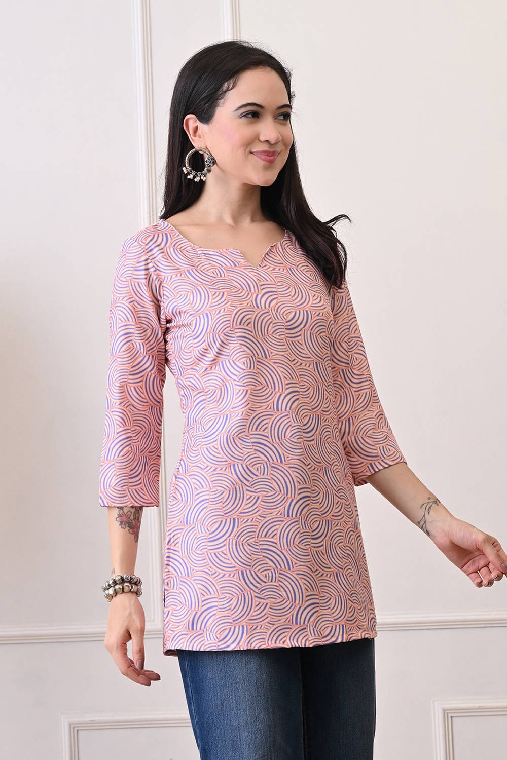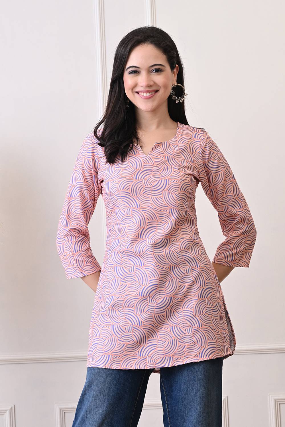 Peach Printed Rayon Short Kurti