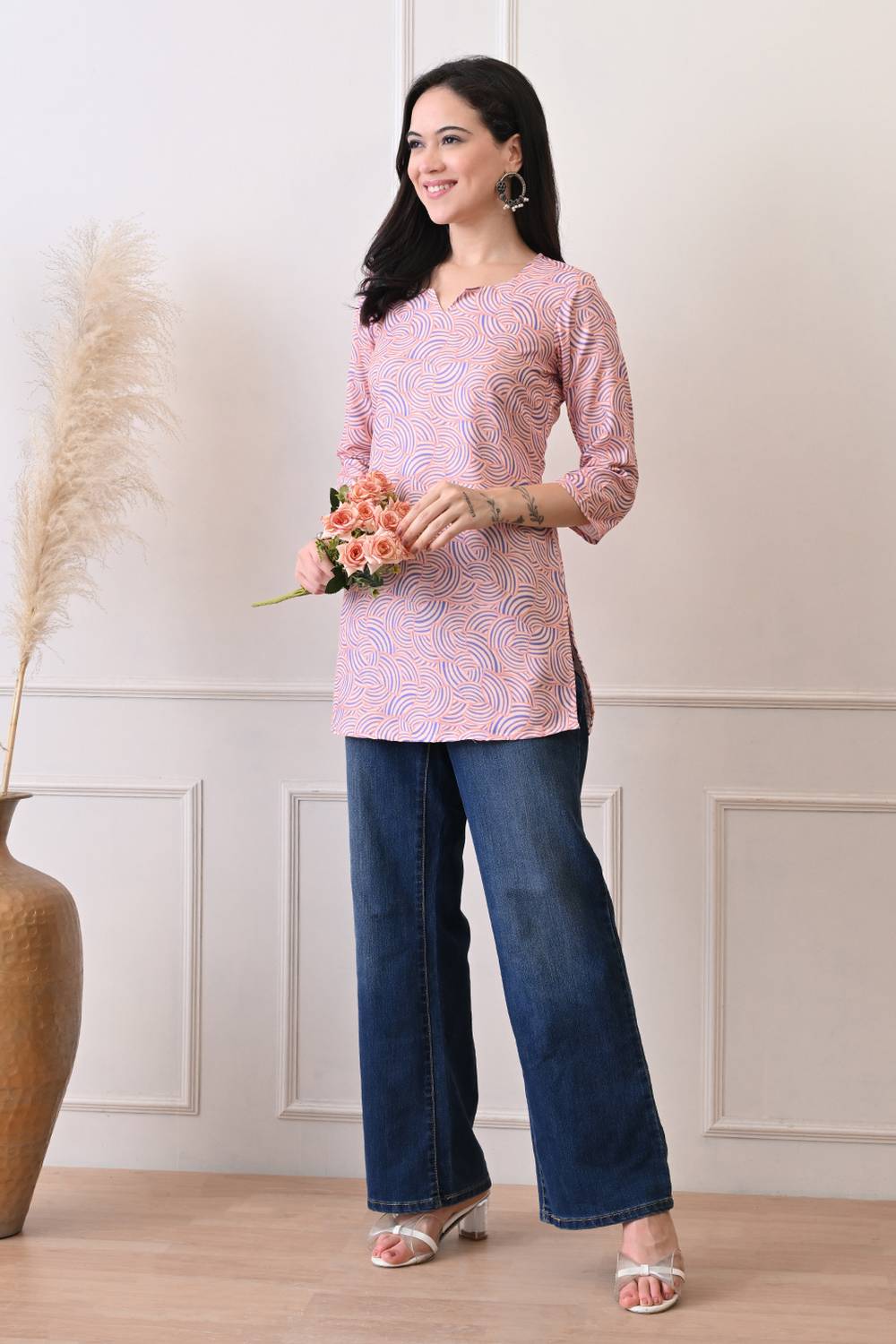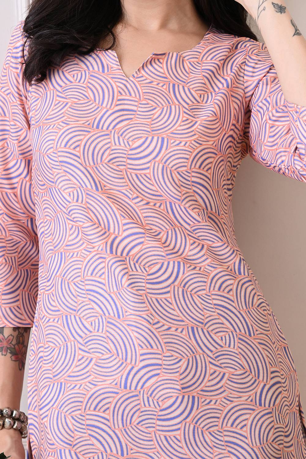 Stay stylish and comfortable with our Short Kurtis designed for all-day elegance. Made with Rayon this set is perfect for easy movement and timeless appeal. The beautiful and intricate Printed elevates its design for Casual or daily wear, this kurti set is your go-to outfit. Pair it with elegant earrings and kolhapuri sandals or heels for a traditional look or wedges for a modern edge
